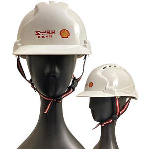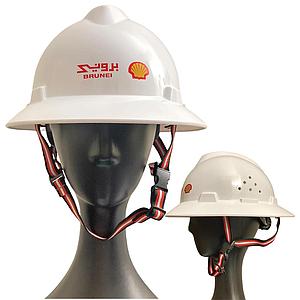 Safety Helmet with Chinstrap (Half Brim, Vented, White) - BSP Logo
